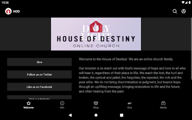 Welcome to the official House of Destiny app! We are an online church family! A community of people here to pray for you, believe with you, stand with you, celebrate with you, and provide any support you may need. We want to help you grow in your relationship with God and learn to recognize His voice in your own life.