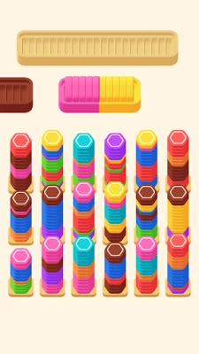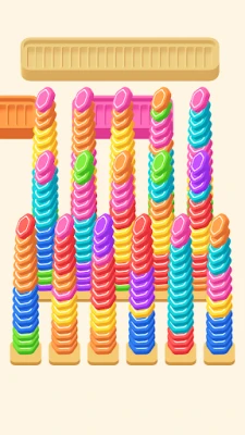 How to Play: - Tap to move stacks to the target tray or storage tray based on their color. - Fill the empty target trays with their colorful stacks. - Level is cleared when the target trays are filled with matching color stacks. - Use the storage tray to temporarily hold non-matching stacks.