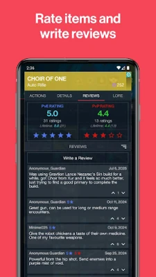 Community Reviews & Voting – See what others think about weapons and armor. Upvote the most helpful reviews and contribute to the Destiny 2 community.